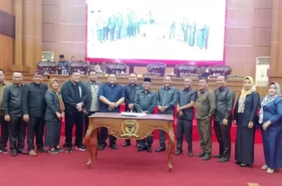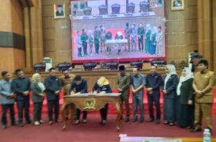 MERCURENEWS.com – RANCANGAN Peraturan Daerah (Raperda) Perubahan APBD 2024 menjadi Peraturan Daerah (Perda) Perubahan APBD 2024, disahkan.*** Pengesahan tersebut dituangkan melalui penandatanganan nota kesepakatan antara Eksekutif, yaitu Bupati Musi Rawas (Mura) Hj Ratna Machmud, dengan Legislagif yang diwakili Ketua DPRD Musi Rawas, Azandri, S.IP disaksikan Wakil Ketua II, Hendra Adi Kusuma, Ketua-Ketua Fraksi, Ketua-Ketua Komisi pada Rapat Paripurna bertempat digedung …