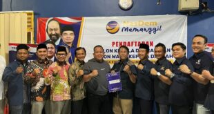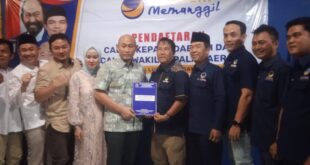 MERCURENEWS.Com-Setelah mengambil berkas, Senin (29/4/2024) lalu, Bakal Calon Walikota (Bacawako) Lubuklinggau, H. Rachmat Hidayat atau karib disapa Yoppy Karim melalui mandat Andika Wira Kesuma dan pengurus DPD NasDem Lubuklinggau, Sabtu sore (4/5/3024) sekira pukul 15.00 WIB mengembalikan berkas bakal calon ke DPC Partai Bulan Bintang (PBB) Lubuklinggau di Jalan Gajah Mada Kelurahan Siring Agung Kecamatan Lubuklinggau Selatan II. Tomy Mafinal …