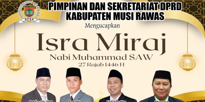 MERCURENEWS.COM – Pimpinan dan Anggota Dewan Perwakilan Rakyat Daerah (DPRD) Kabupaten Musi Rawas beserta Sekretariat ucapkan selamat memperingati Isra Miraj Tahun 2025